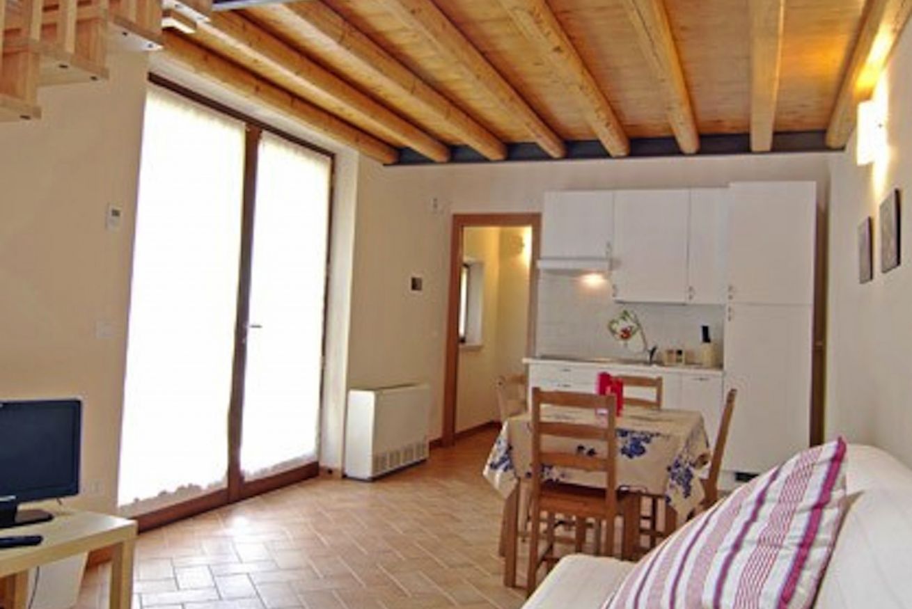 Delizioso monolocale su due livelli con vista giardino.